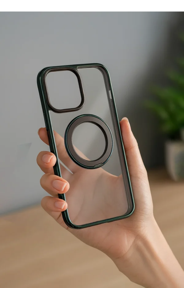 Experience premium style and hands-free functionality with the Glass Shine TPU Case, featuring a hard glass-like transparent back, real chrome metal frame, and a retractable kickstand — designed for iPhone users who love elegance and convenience.
